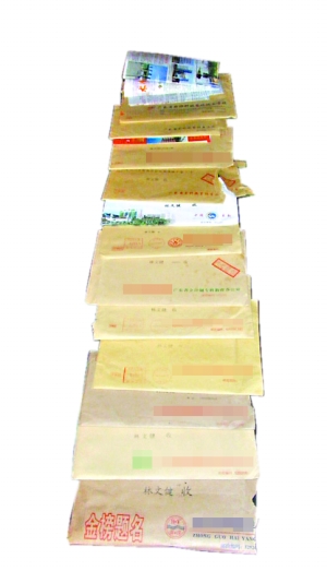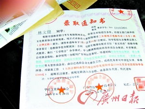 家住江门新会区的林先生一连收到11封录取通知书