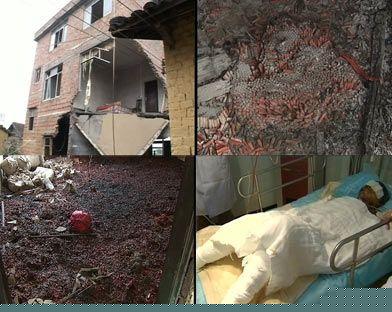在装配火药的房间里面,记者见到了部分制造炮竹的原材料和工具。据了解,在这个房间内装配好火药之后,再由孩子们安装引信,事故死伤的13名小学生最小的只有7岁,最大的14岁。其中烧伤面积达90%以上的5人,烧伤面积55%至78%的4人,烧伤面积12%至40%的3人。1名儿童在送往医院后经抢救无效于12日22时30分死亡。而烧伤的孩子将经历2到4个星期感染期的生命考验,在感染期内仍然随时有生命危险。