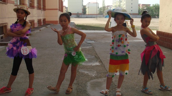 妈妈设计制做的环保时装,漂亮吧!