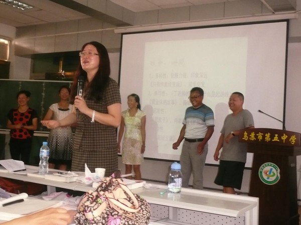 张老师在给我们做游戏后点评、引导。抓手游戏让我们大家分别获得了不同的很多感受。