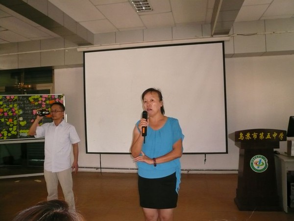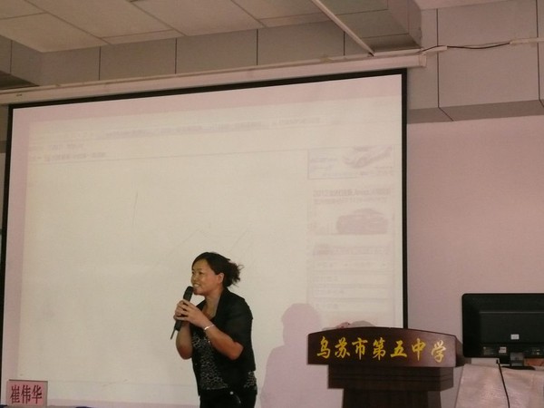 乌苏市教育局副局长付吉春正在征求大家意见要不要等正在给几百名家长做讲座
