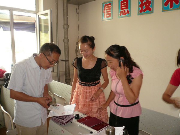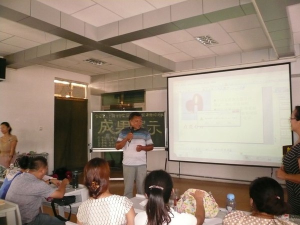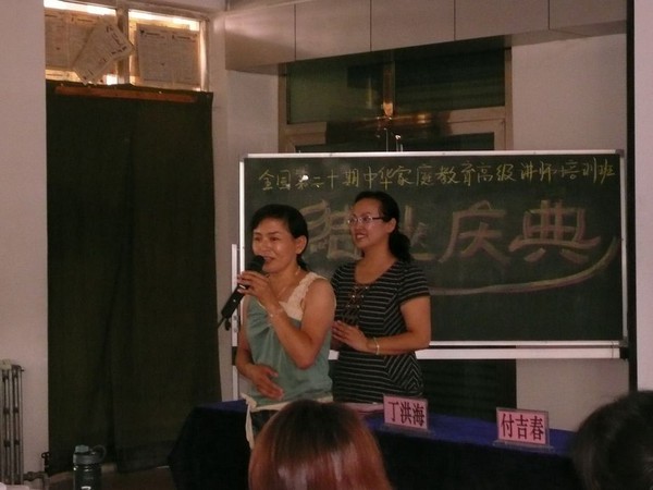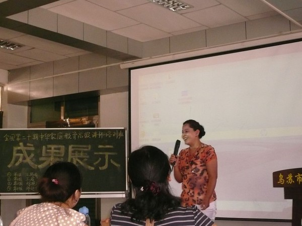 季老师和乌苏市教育局的领导正忙碌着为我们的中华家庭教育高级讲师的