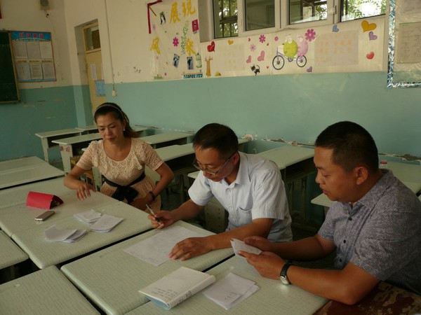 丁老师和各队的队长在统计讲座名次投票的情况。(看看大家都是很认真的哦!)