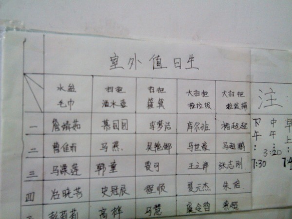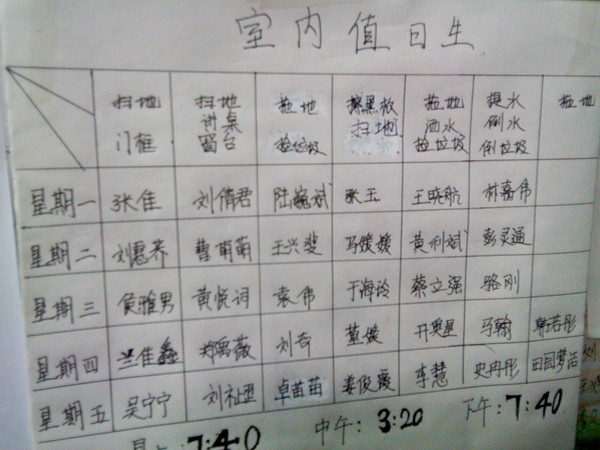 我们的讲桌!班主任没有要求我们写座位表,是班长自己贴上去的,这样老师们就很容易对学生“对上号”了!