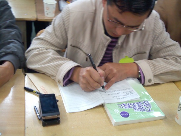 刘倩君的爸爸好好认真啊!边听边记录。这桌子上怎么两支笔啊!