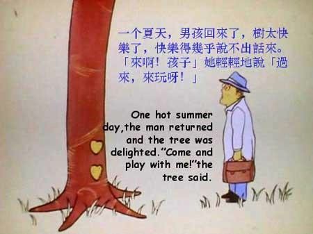“对不起,孩子,”苹果树说,“我没有什么可以给你的了,没有苹果给你吃。”