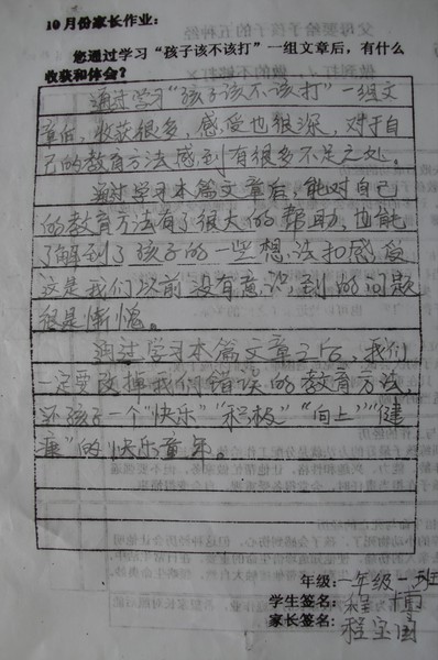 10月份优秀家长作业