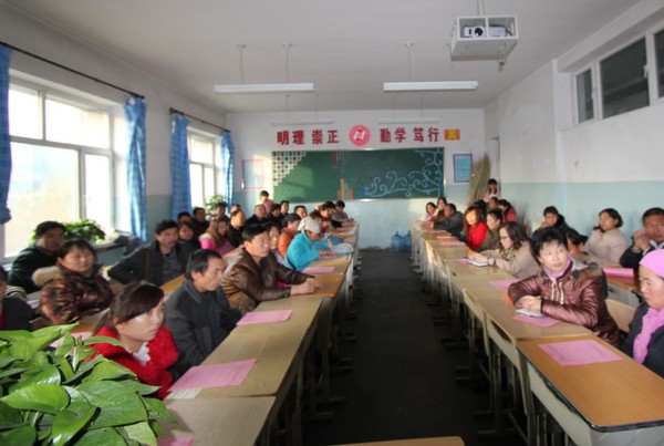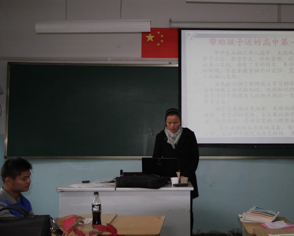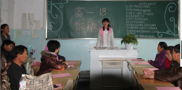 这几天,全校最大的一件事应该是期中考试后的变革家长会,高丽娜校长在14号专门召开了变革家长会领导动员会议。今天高一(18)(19)(22)(23)几个年轻的班主任首先召开变革家长会议。 高二(21)(22)(23)也在今天下午召开,我和董主任整个下午都在各个班级观摩其家长会召开情况。 这次变革家长会对我校家庭教育的推广是一个新起点,很多班主任对变革家长会跃跃欲试。高二(2)班岳良柏副校长班的家长率先征订了家长学校教材《不输在家庭教育上》。没有学习过家庭教育的高一组长游建荣老师的班级,全班58位家长都自愿的征订了《不输在家庭教育上》。今天,董天喜主任和我为了变革家长会专门调整工作,对以上班级的变革家长会进行观摩指导。美术老师梁加成老师整个下午都在各个班级采集照片。