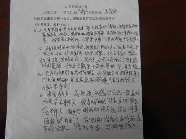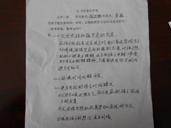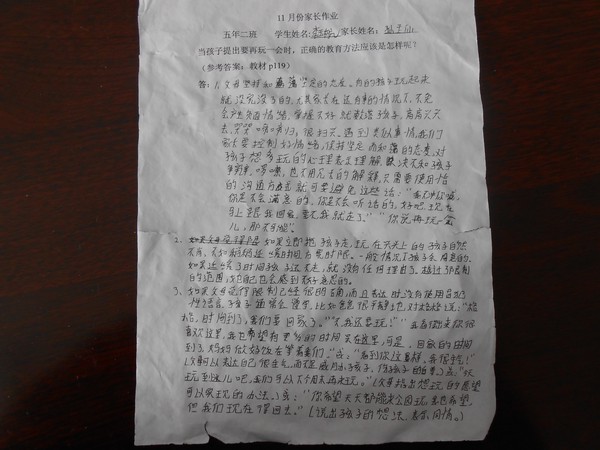 五年二班11月份优秀家长作业