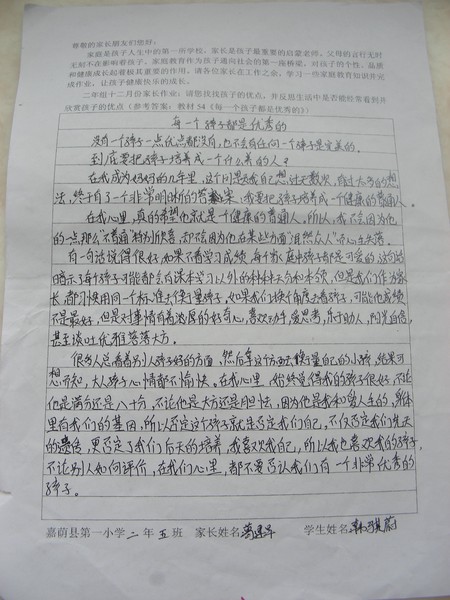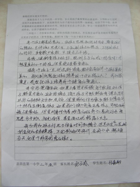 各位家长,教育孩子是摆在我们每位老师及家长面前的话题,希望我们本着“为了一切孩子,为了孩子的一切”的理念,家校形成全力。