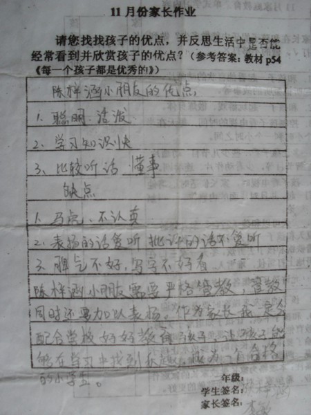 11月份优秀家长作业