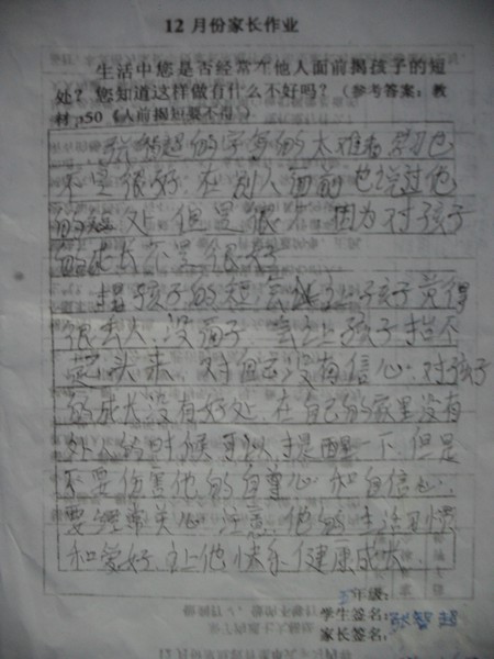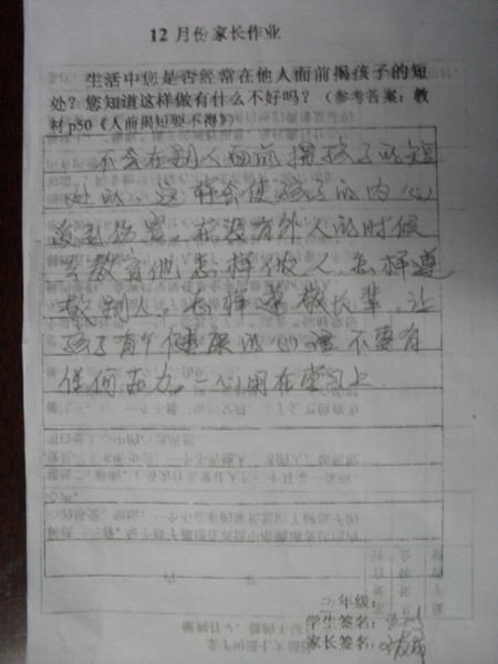 12月份家长优秀作业