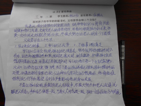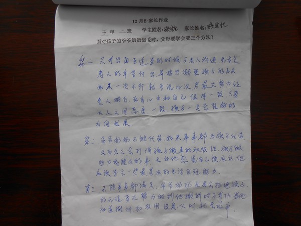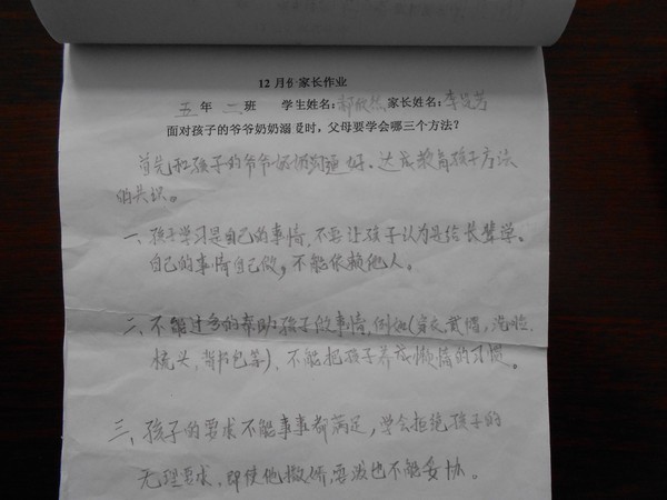五年二班12月份优秀家长作业