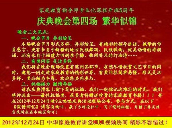 家庭教育指导师开班5周年庆典第四场晚会公告