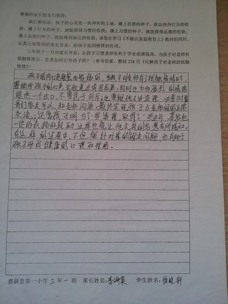 家长作业单