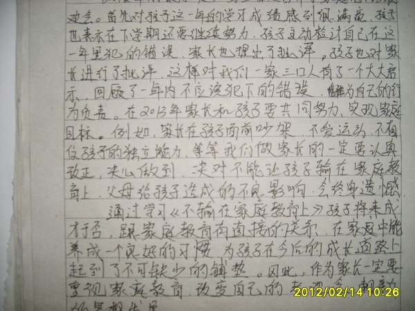 2013年1月份家长作业
