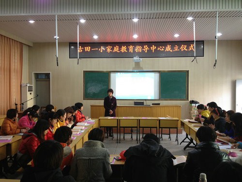 2013年3月5日上午,古田一小全体班主任齐聚多媒体教室,举行家庭教育指导中心成立仪式,活动邀请了古田县家庭教育指导中心吴明主任和古田县妇联的家庭教育志愿者共同参加。启动仪式后吴明主任做了《提升家庭教育素养》的专题讲座,详细地指导了“班级家庭教育指导委员会的”工作,还和与会的全体人员体验了新模式下的家长会和读书交流会,大家纷纷表示受益匪浅,愿为家庭教育普及工作贡献绵薄力量。