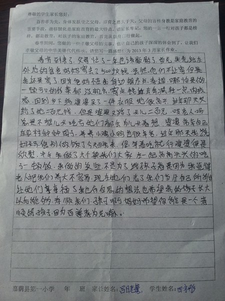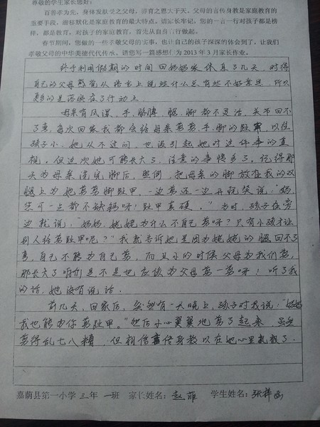 2013年3月家长作业单