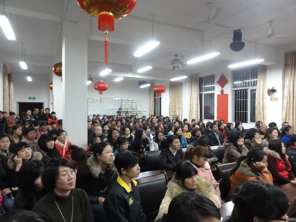 家长们听得专注,走廊上也挤满了人