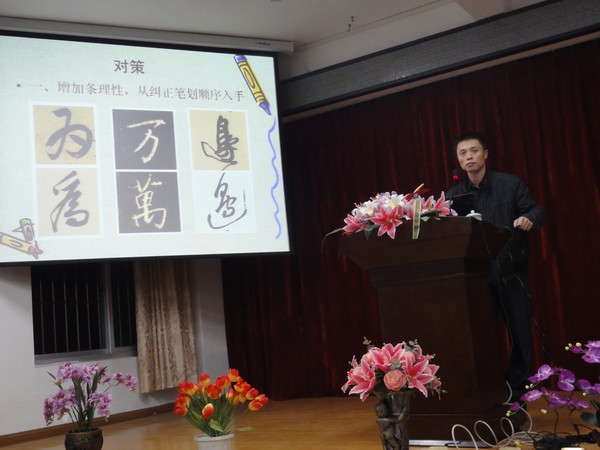 汉字,是一种形体优美的文字,培养学生良好的写字习惯,指导学生写好汉字,是小学阶段的重要任务。 2013年3月7日晚上7点,在古田县实验小学的多媒体教室里,我有幸聆听了古田县书法名人李平辉老师的《浅谈小学汉字书写教育》讲座,受益非浅。
