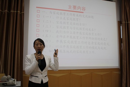 此次培训由德育主任谭爱霞主持,邀请家庭教育高级指导师、家庭教育高级讲师、国家三级心理咨询师、国家三级婚姻家庭咨询师、青少年心灵成长导师、早教人才培训师、塔城地区家庭教育指导中心副主任崔伟华老师来我校进行工作培训,崔老师从什么是家庭教育;家庭教育是谁的责任;家庭教育与学校教育的关系;我们为什么要开展家庭教育工作;老师在开展教育工作中所扮演的角色;开展家庭教育工作对自身家庭的意义;以往开展家庭教育工作的模式与成效;如何开展落地式的家庭教育工作等方面对全体家庭教育指导委员会委员及班主任进行了深入浅出的指导。随后,谭主任向家长们说明了本学期家长学校工作重点并提出了工作要求。
