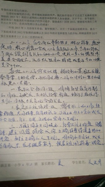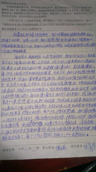 二年二班一月份家长作业