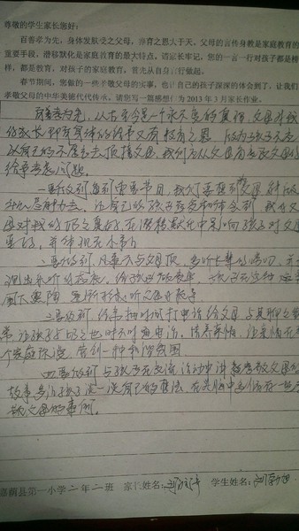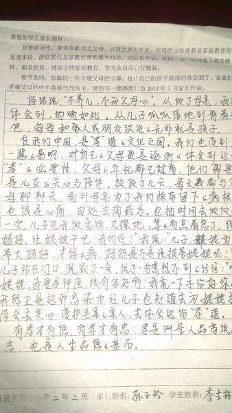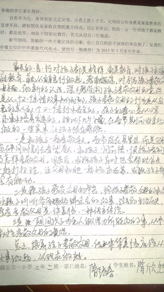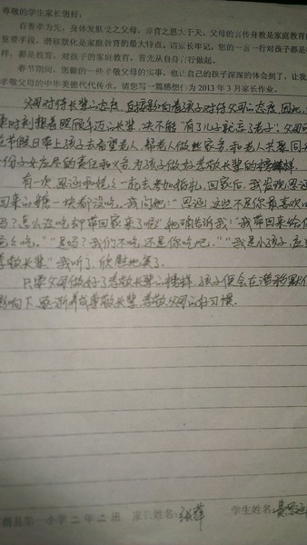 二年二班三月份家长作业