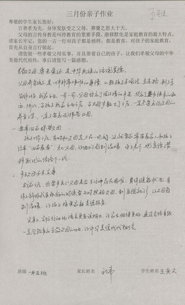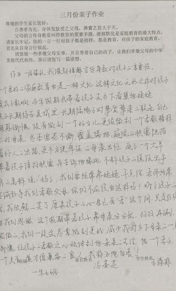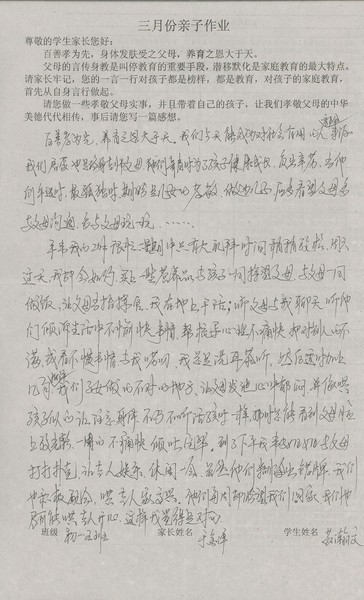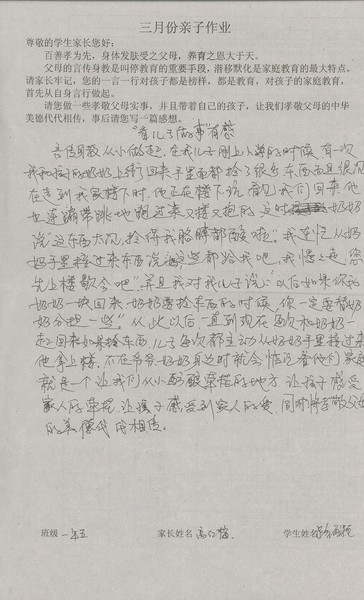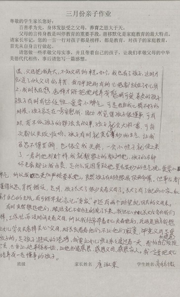 三月份优秀家长名单