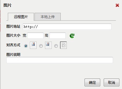 可选择“远程图片”即网上图片,输入图片的链接地址,也可选择“本地上传”即自己电脑中的图片。最后点击“确定”即可完成。