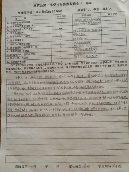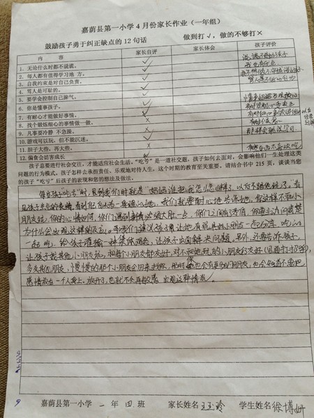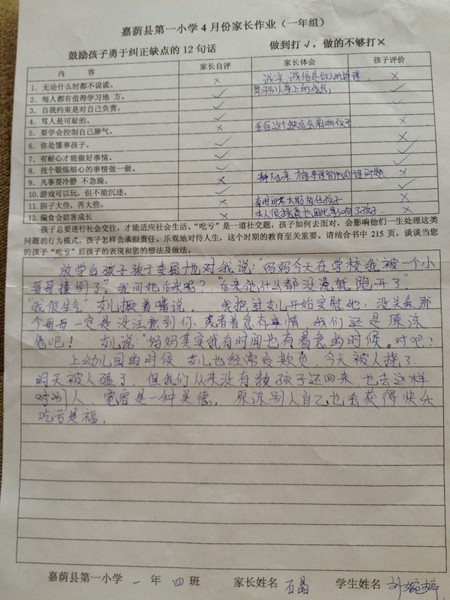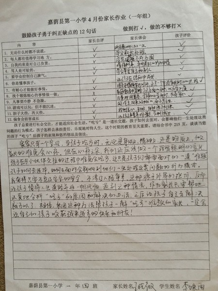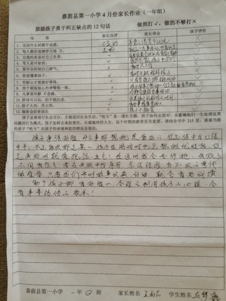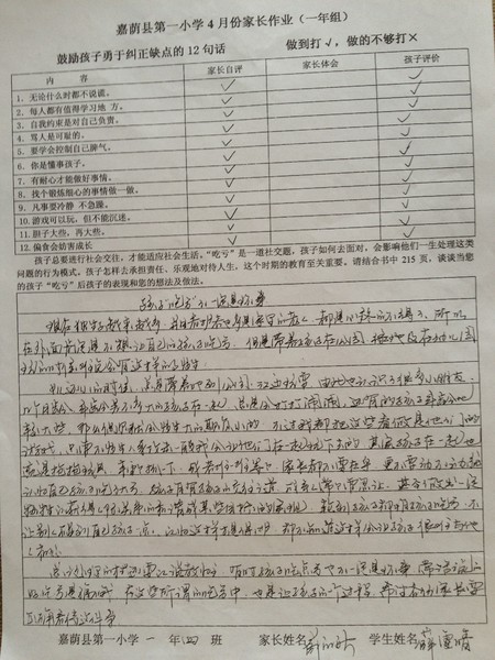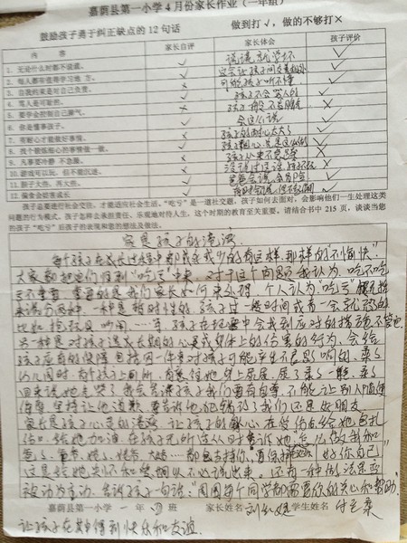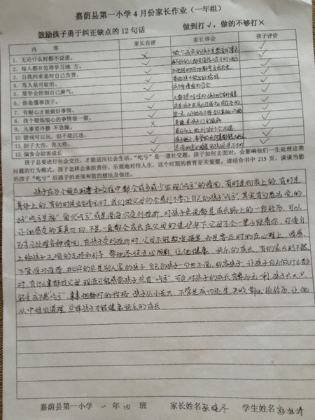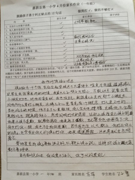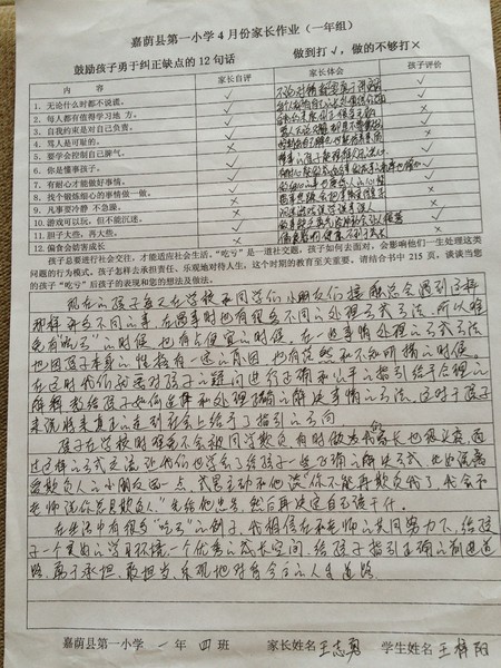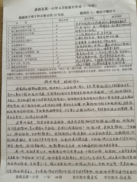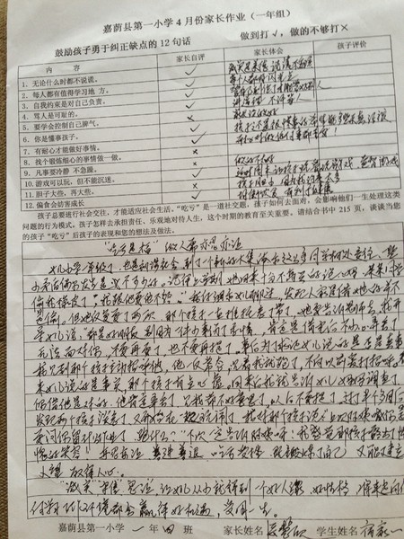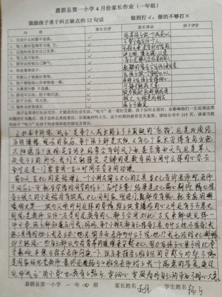 优秀家长作业