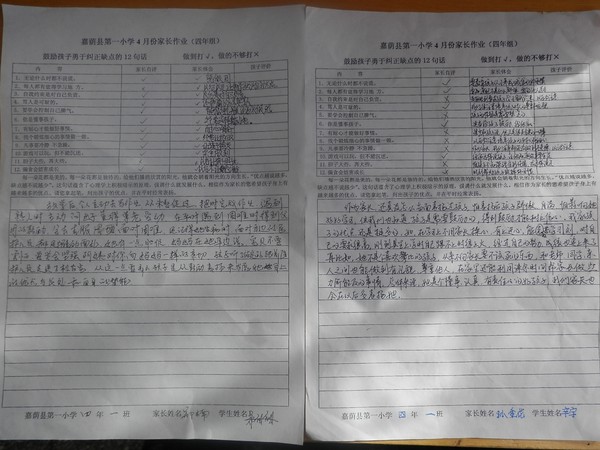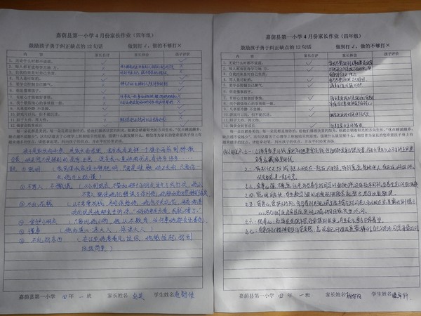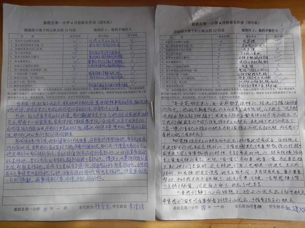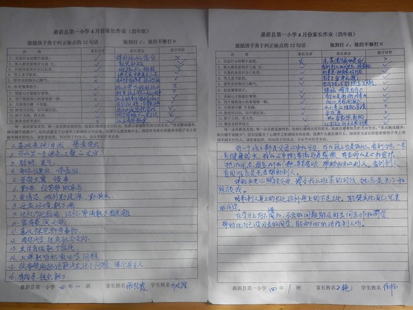 四年一班四月份家长作业