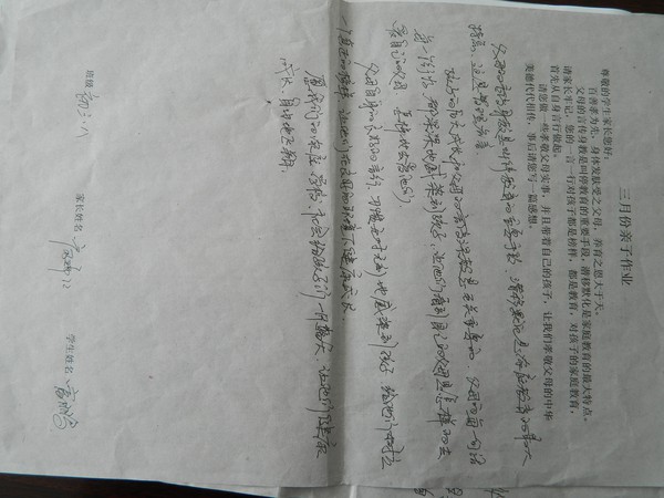 三月份优秀家长作业