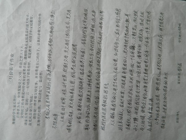 三月份优秀家长作业