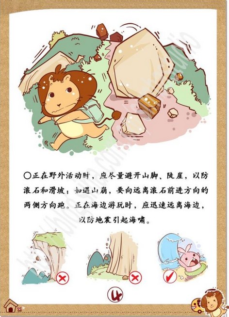 在操场或室外时,可原地不动蹲下,双手保护头部,注意避开高大建筑物或危险物。