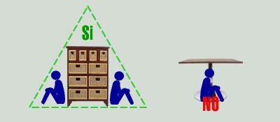 屋內各堅固體旁可躲避的救命三角區: