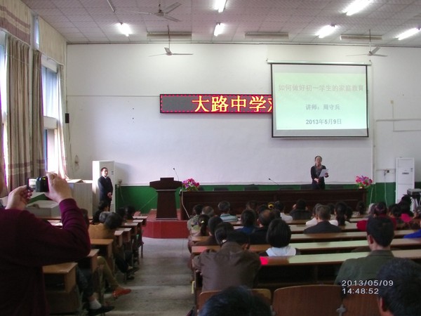 5月9日为璧山大路中学初一学生家长举办《如何做好初一学生的家庭教育》讲座。