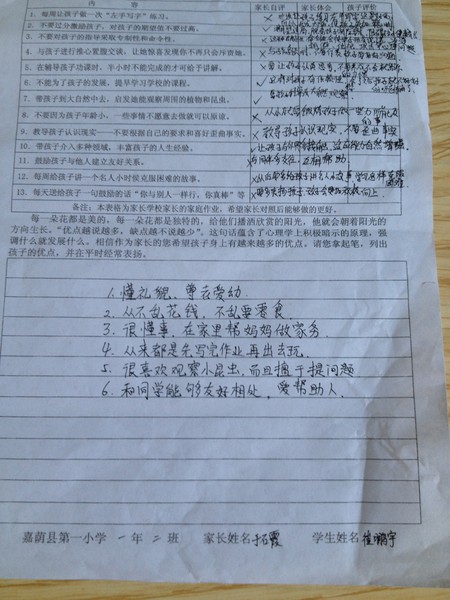 一小一年二班5月优秀家长作业