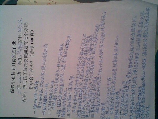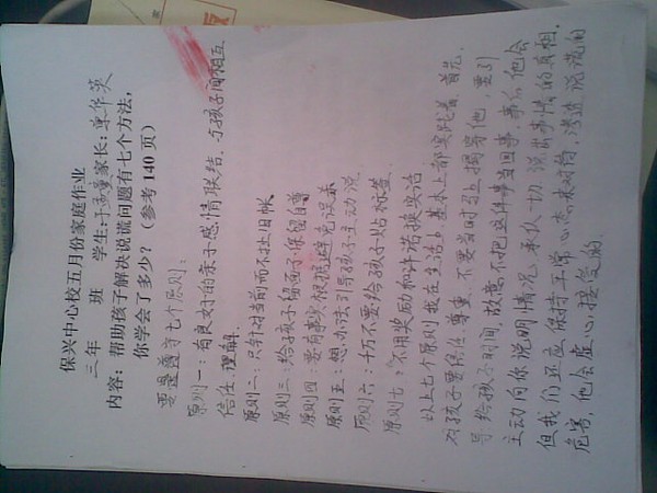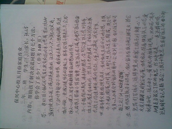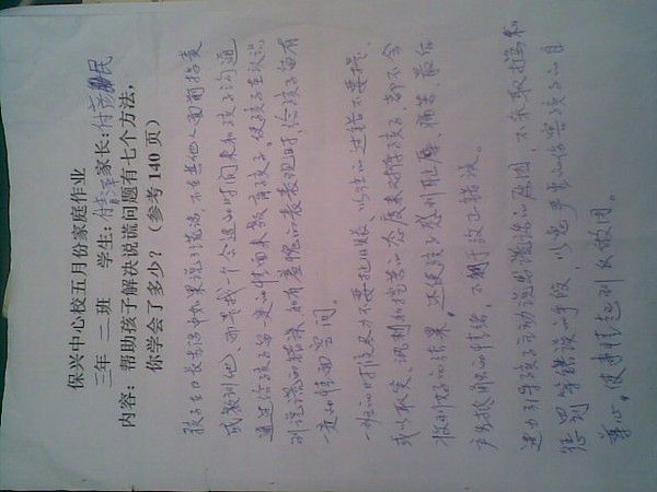 2013年5月三年级优秀家长作业
