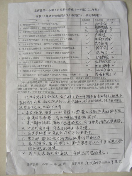 “能发现孩子有10个优点,您是优秀的父母;能发现5个优点,您是合格的父母;如果一个都没发现,您就该‘下岗’了”。这是全国著名青少年问题专家、中国青少年研究中心副主任孙云晓,在西安少儿教育报告会的一场讲演,使现场2000多名家长感受到一次心灵的震撼。 通过学习《不输在家庭教育上》,部分家长改变了在少儿成长教育中的一大误区———不善于发现孩子的优点。