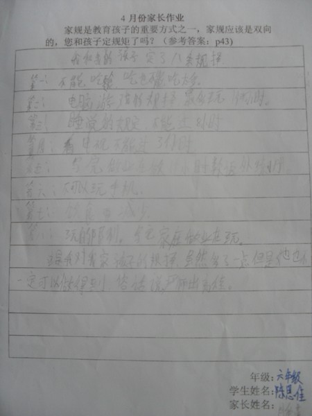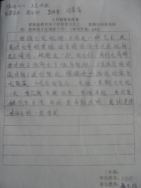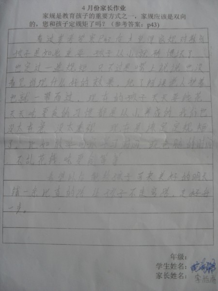 2013年4月优秀家长作业