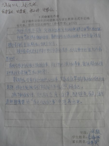 2013年5月优秀家长作业