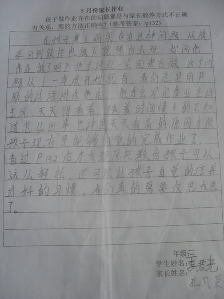 2013年5月优秀家长作业