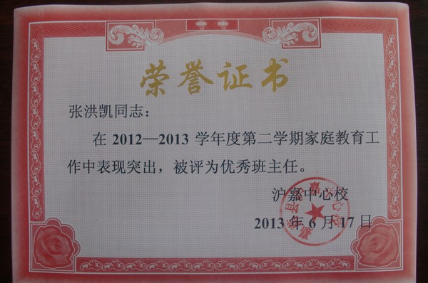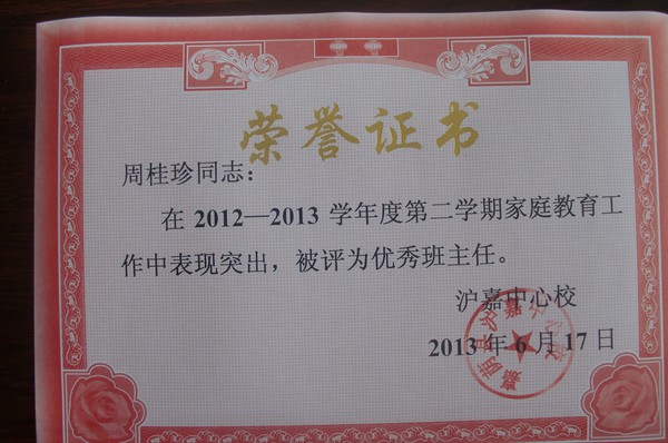 2013年家庭教育工作优秀班主任