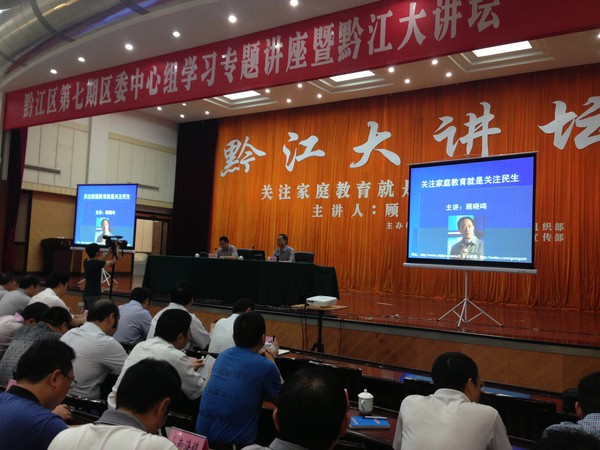堂”在区会议中心举行,会议由区委常委、统战部长程伟主持,会议邀请中华家庭教育网首席专家顾晓鸣老师为黔江大讲堂主讲《关注家庭教育就是关注民生》的专