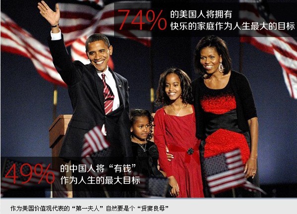 美国主流的家庭观认为不能把个人的职业成功置于家庭之上,但他们也不排斥成功,他们渴望获得的是一种终身受用的、平衡的成功。而在中国,其实不少人都坚信可以为了事业而让家庭让步。