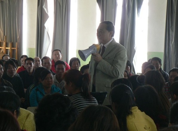 图片说明:在新疆一所中学为家长讲座时停电了……