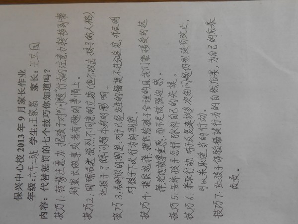 9月份家庭作业