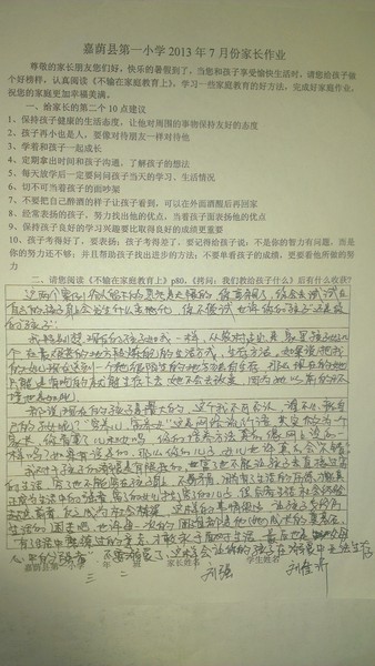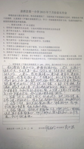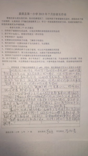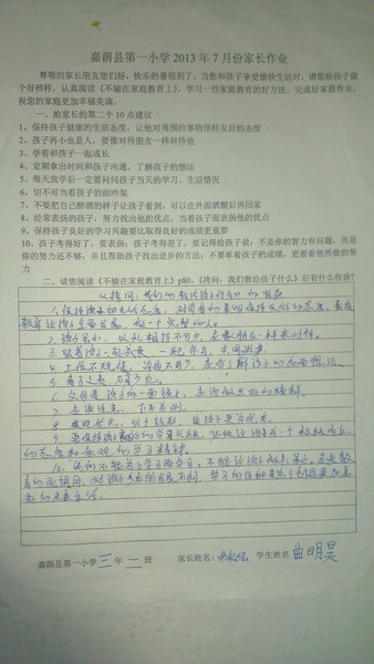 二年二班7月份优秀家长作业