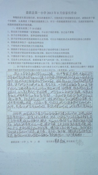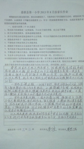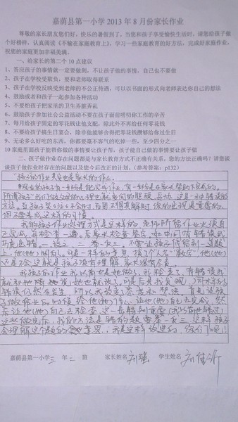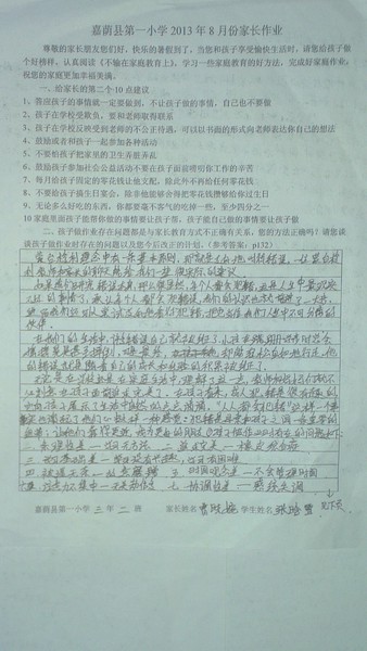 二年二班8月份优秀家长作业