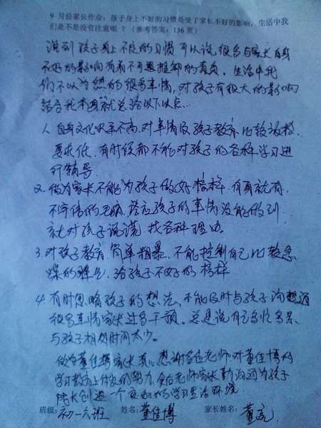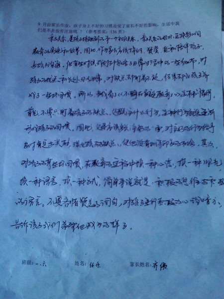9月家长作业